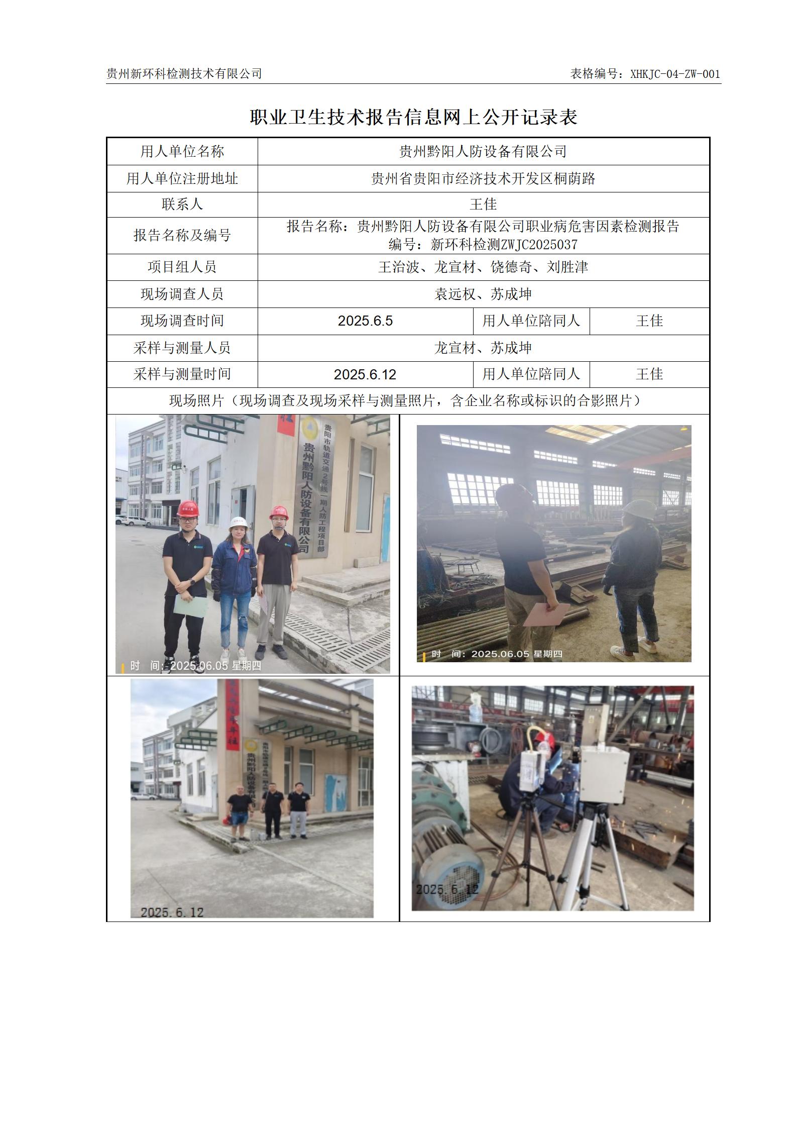 贵州黔阳人防设备有限公司职业病危害因素检测公示