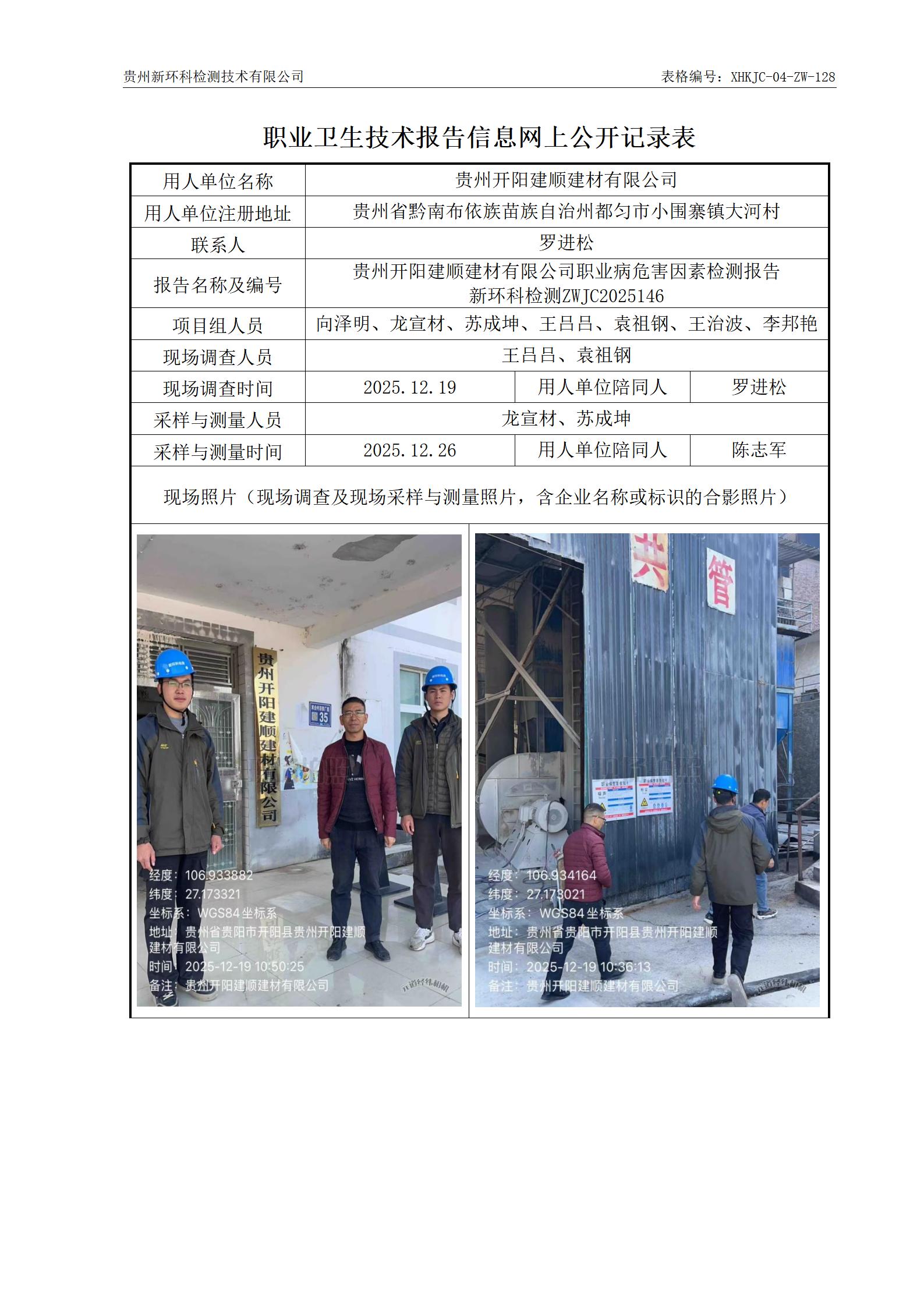贵州开阳建顺建材有限公司职业病危害因素检测