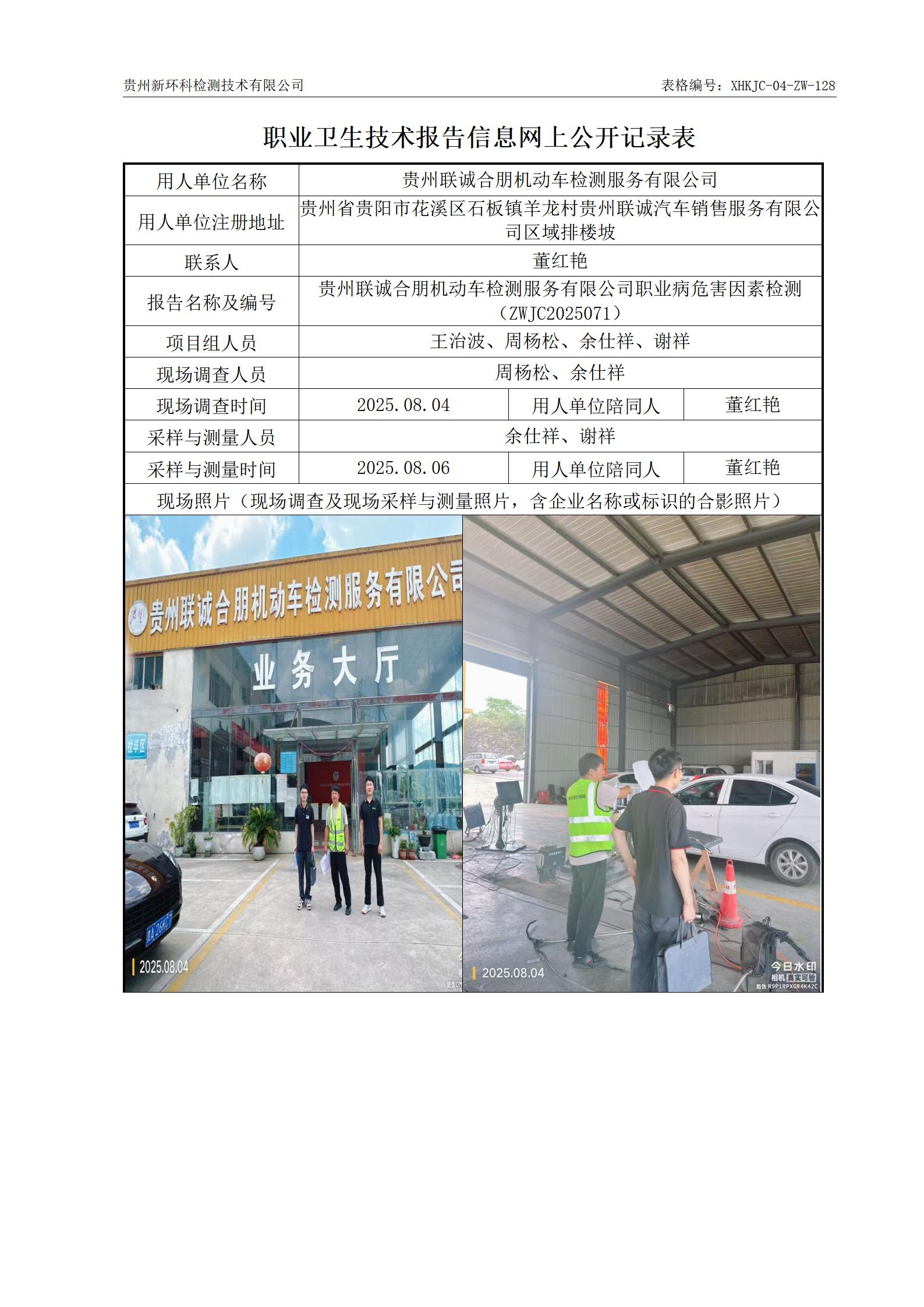贵州联诚合朋机动车检测服务有限公司职业病危害因素检测公示