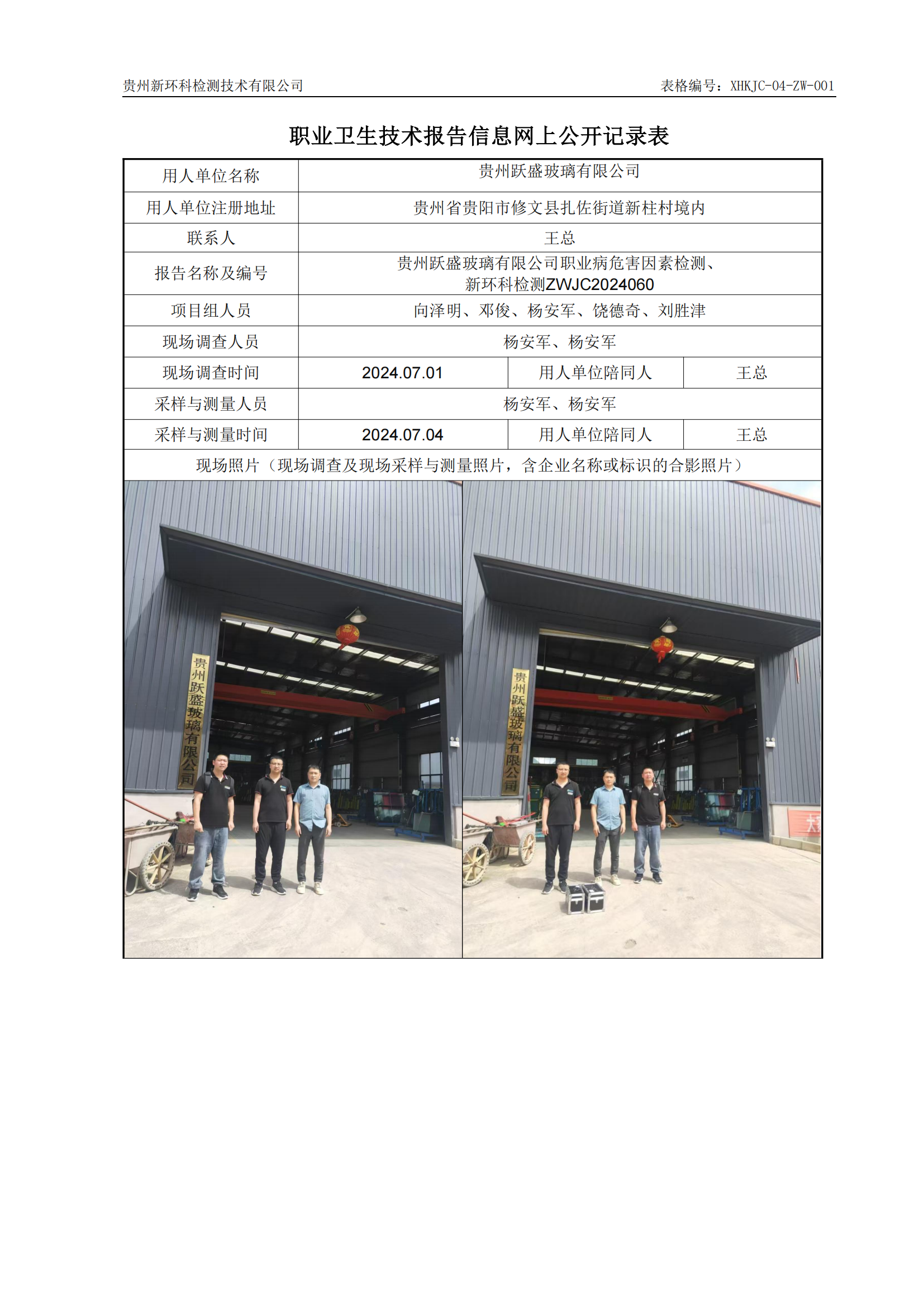 贵州跃盛玻璃有限公司职业病危害因素检测公示