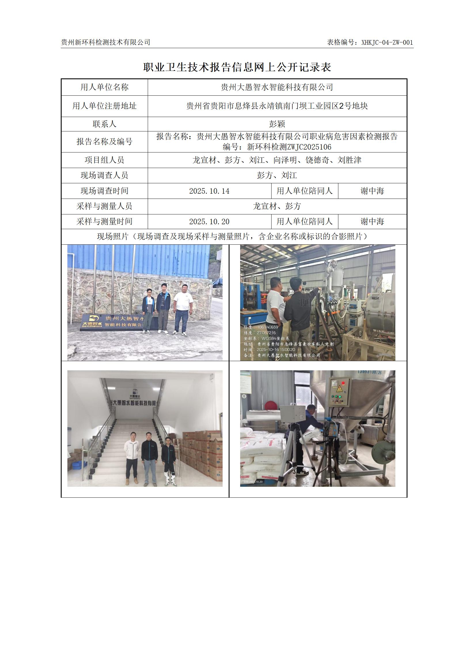 贵州大愚智水智能科技有限公司职业病危害因素检测公示