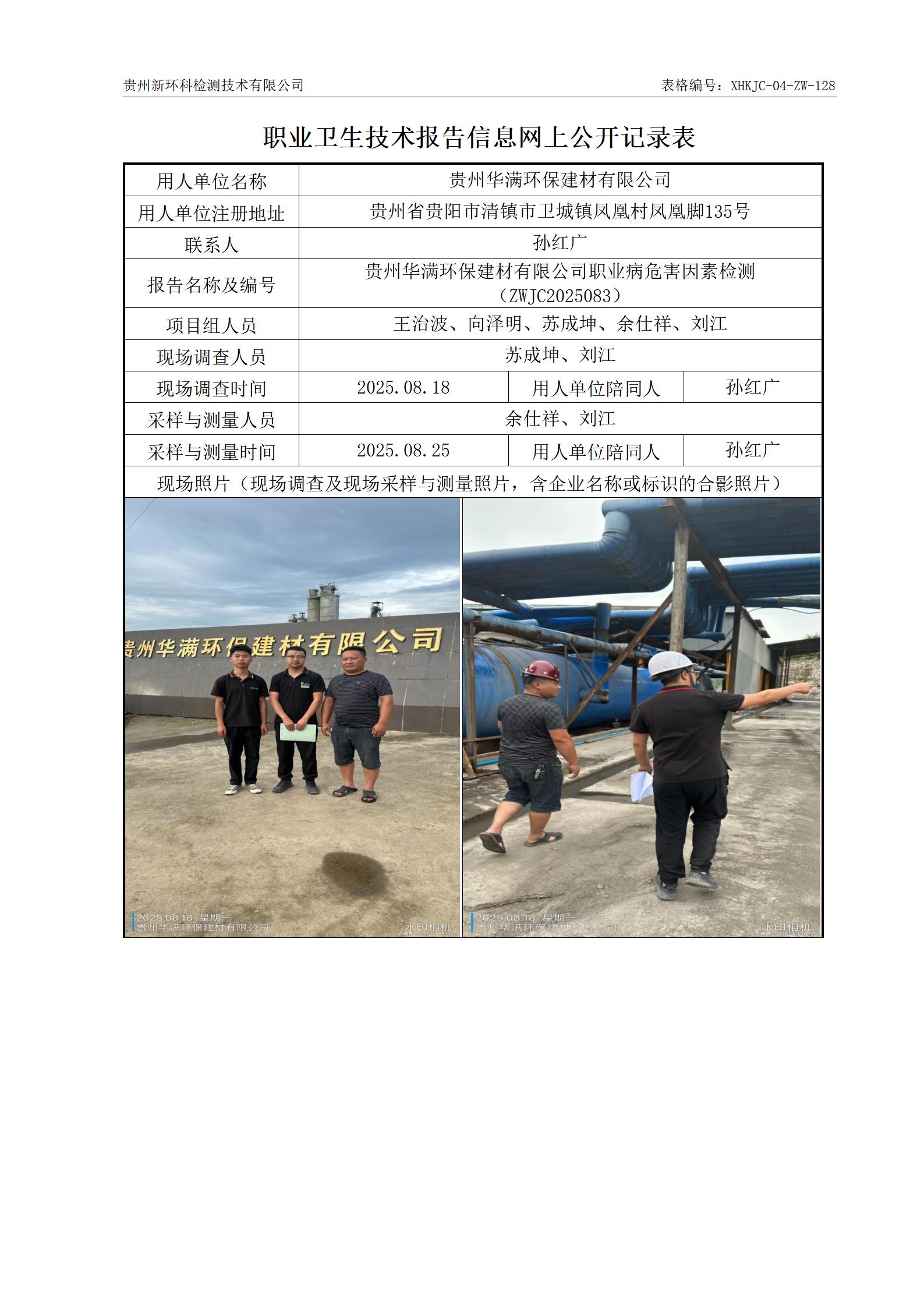 贵州华满环保建材有限公司职业病危害因素检测公示
