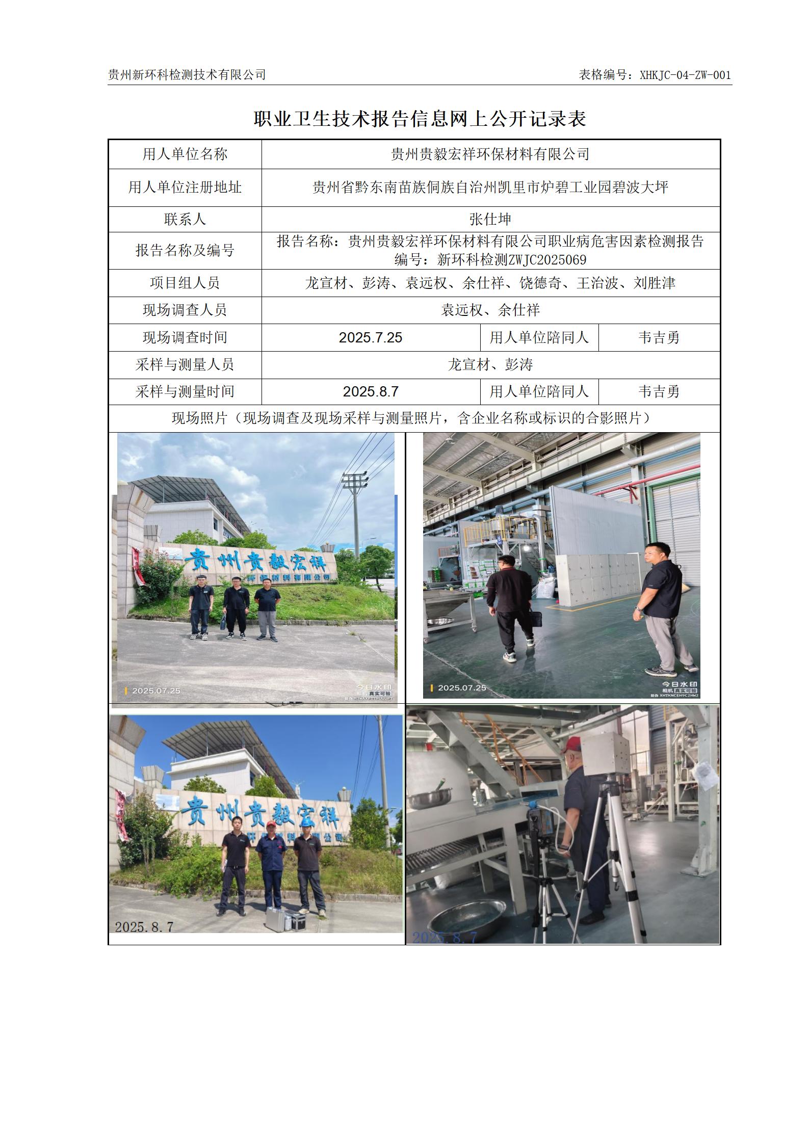 贵州贵毅宏祥环保材料有限公司职业病危害因素检测公示