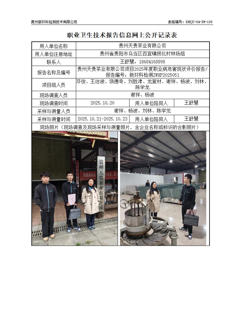 贵州天贵茶业有限公司项目2025年度职业病危害现状评价