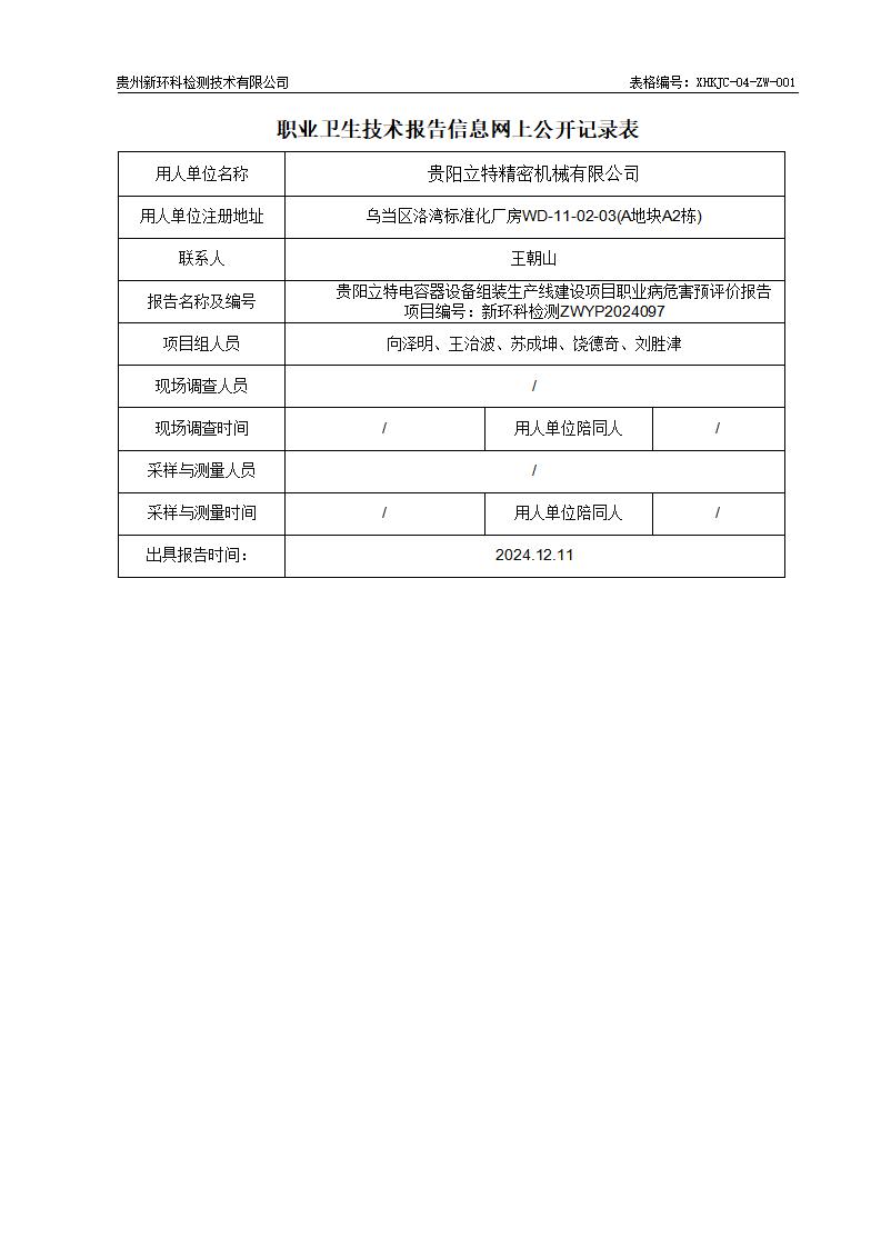 贵阳立特电容器设备组装生产线建设项目职业病危害预评价公示