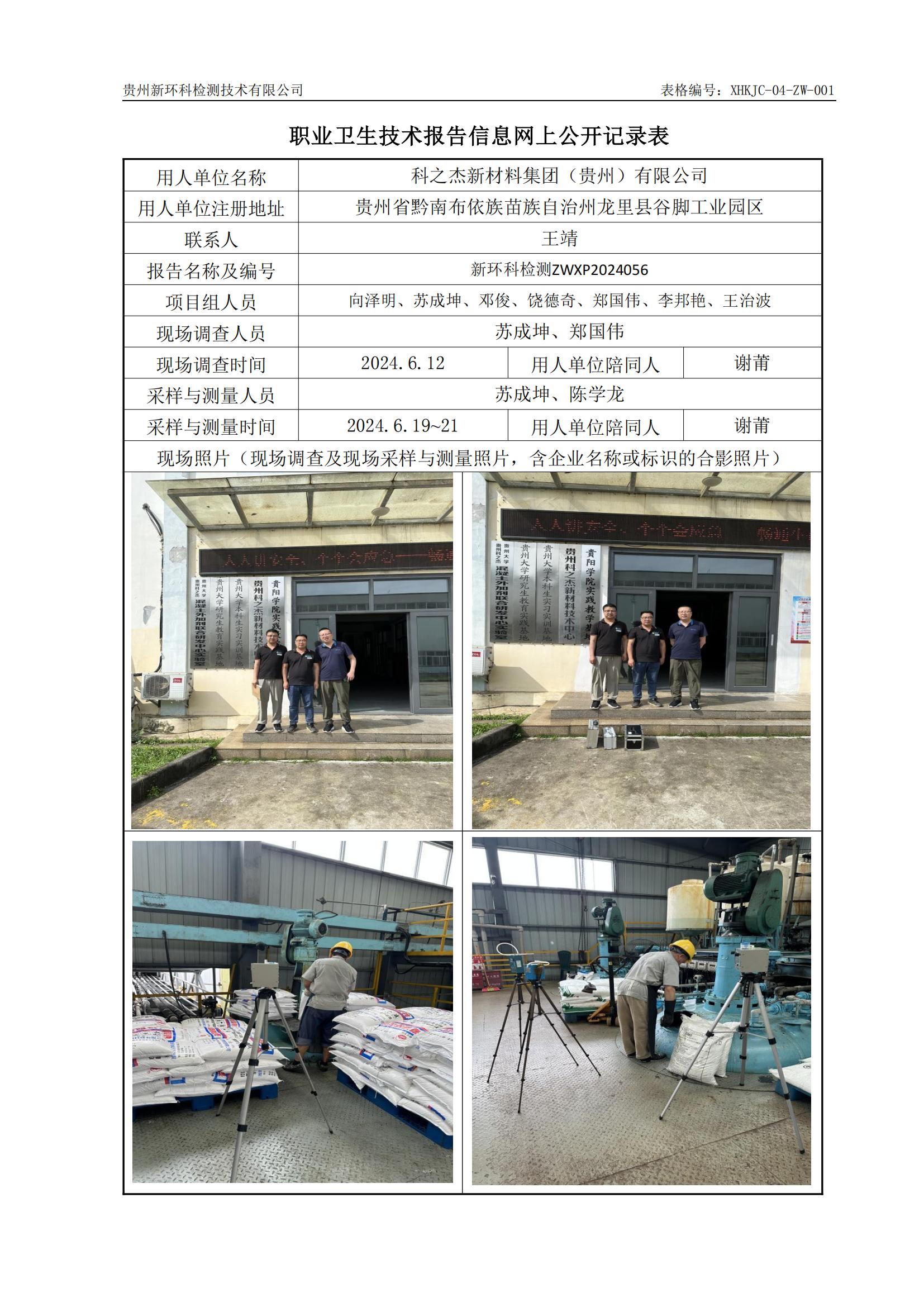 科之杰新材料集团(贵州)有限公司职业病危害现状评价公示