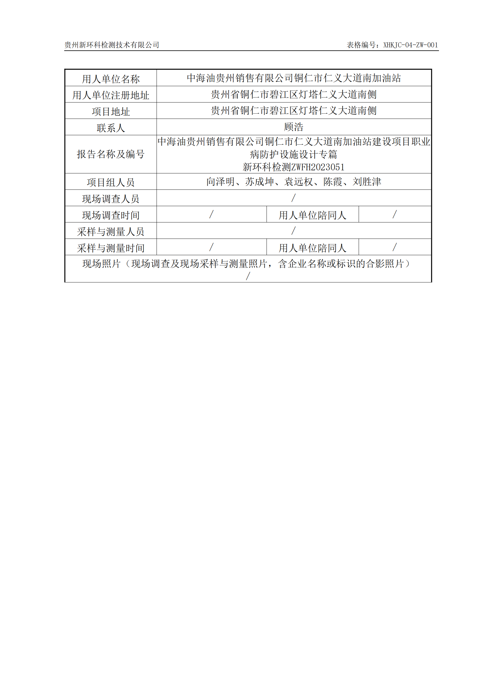 中海油贵州销售有限公司铜仁市仁义大道南加油站建设项目职业病防护设施设计专篇公示