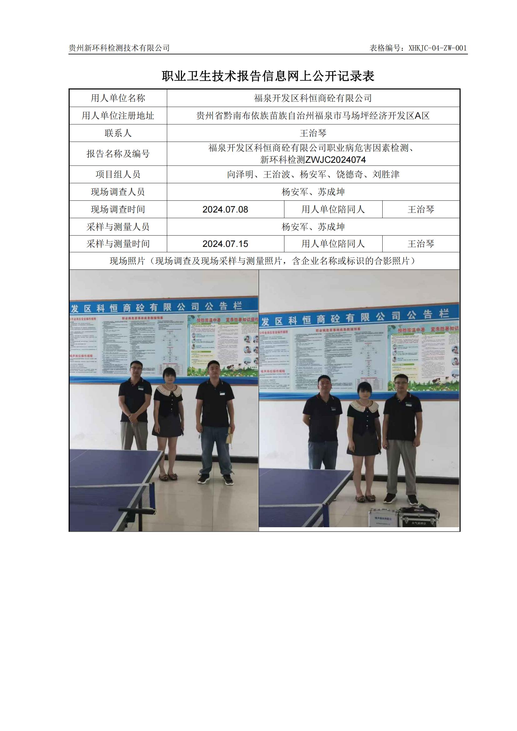 福泉开发区科恒商砼有限公司职业病危害因素检测公示