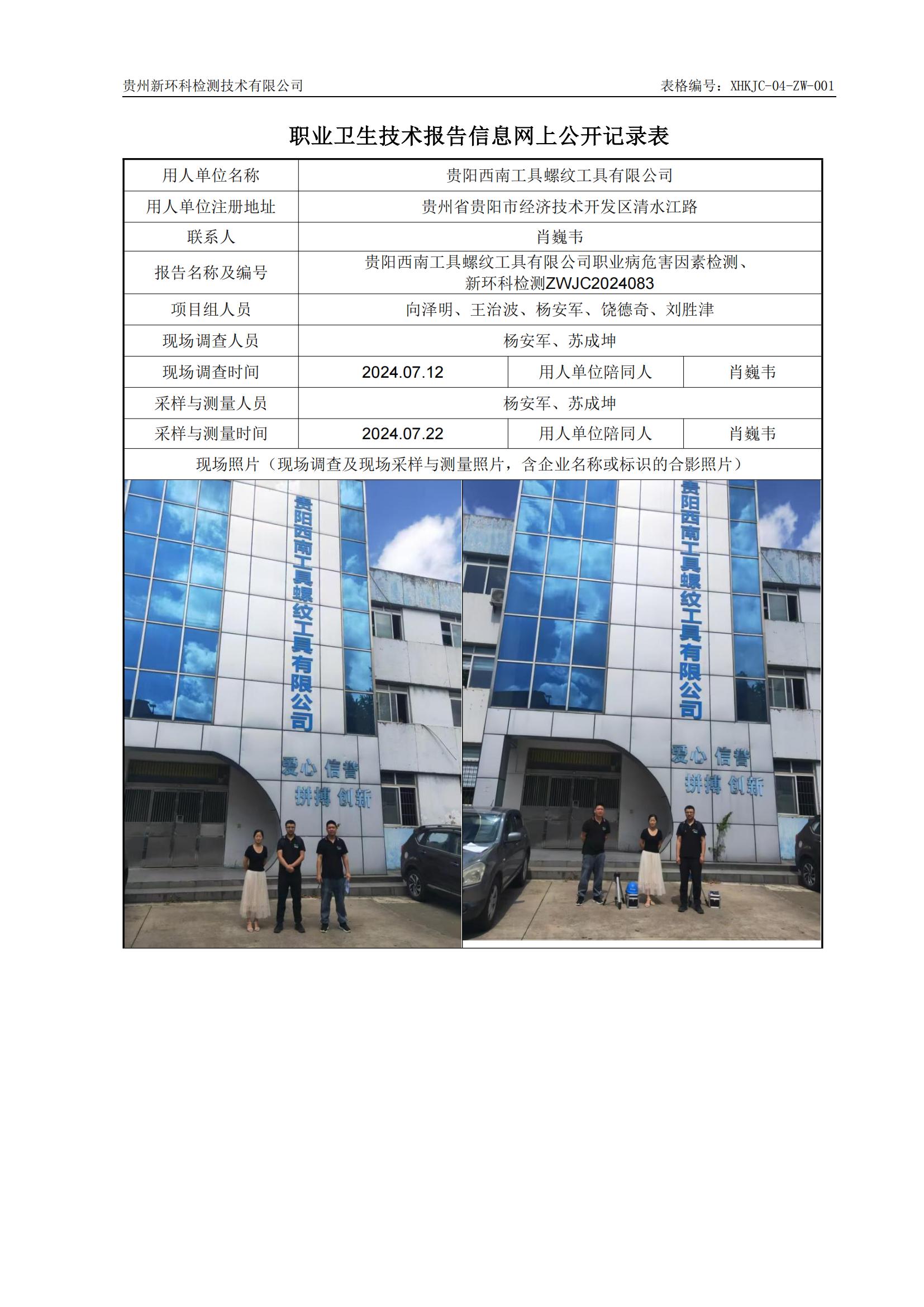 贵阳西南工具螺纹工具有限公司职业病危害因素检测公示