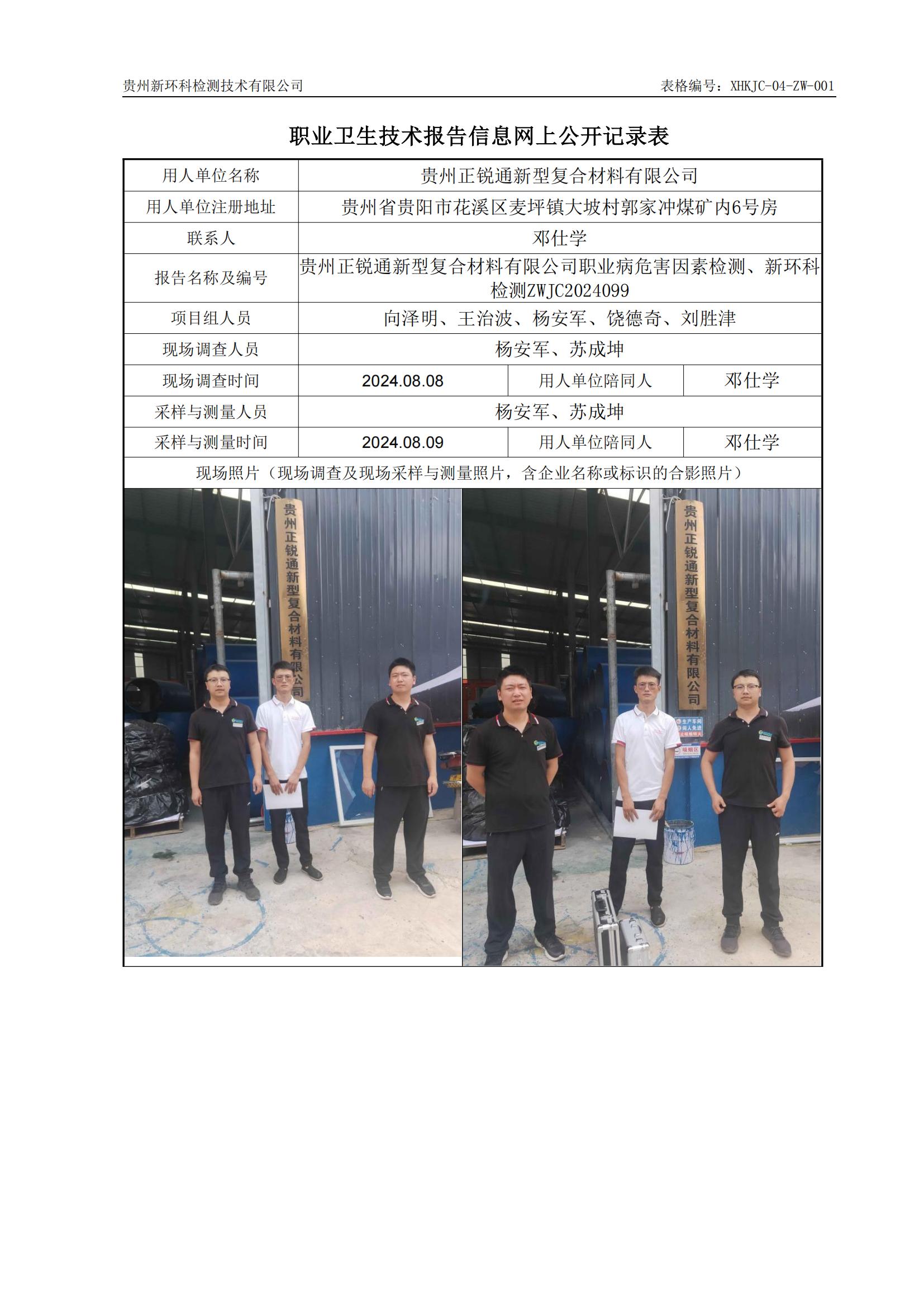贵州正锐通新型复合材料有限公司职业病危害因素检测公示