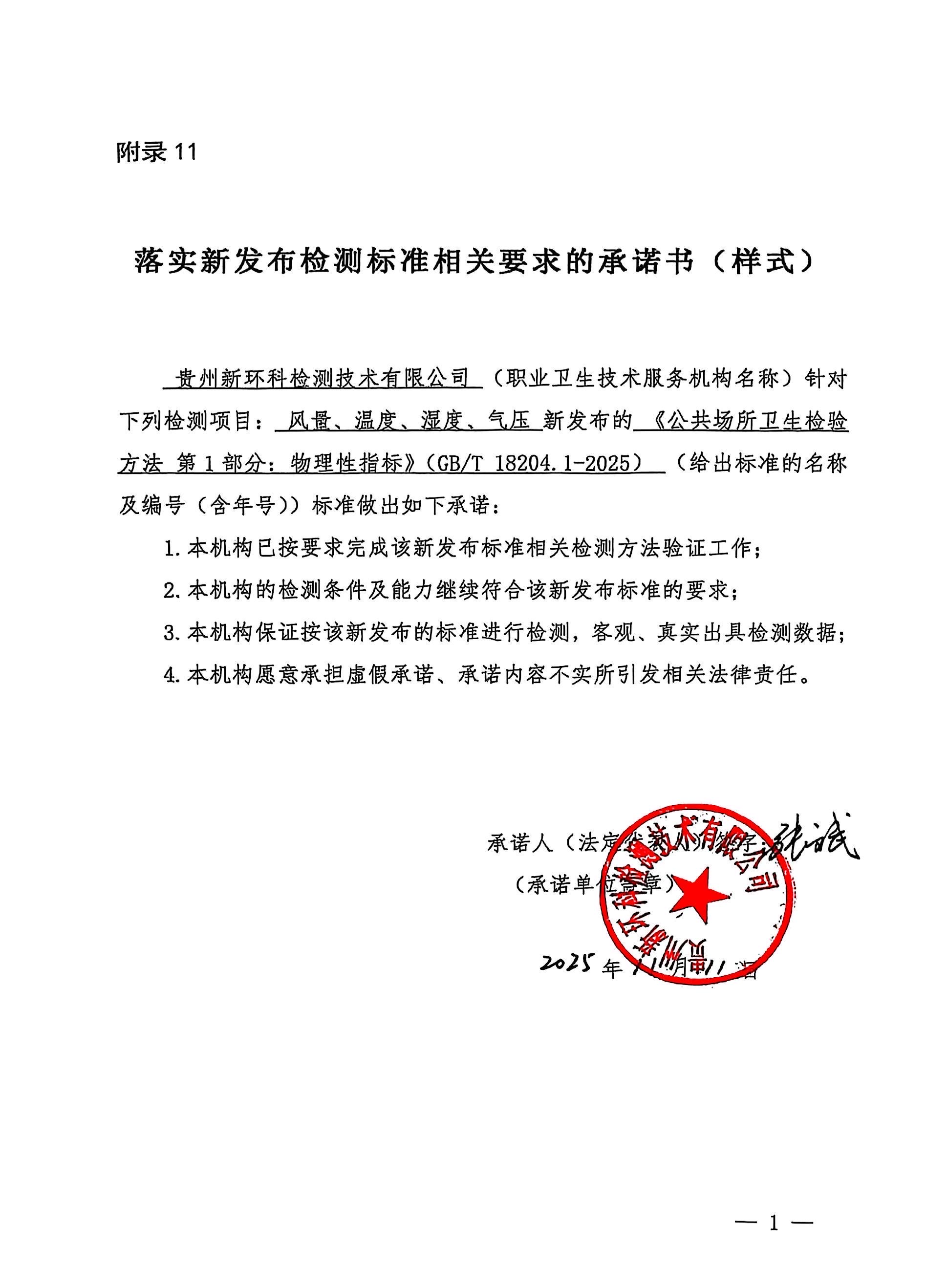 关于本机构放射卫生技术服务的检测条件及能力符合新发布标准(方法)要求的承诺