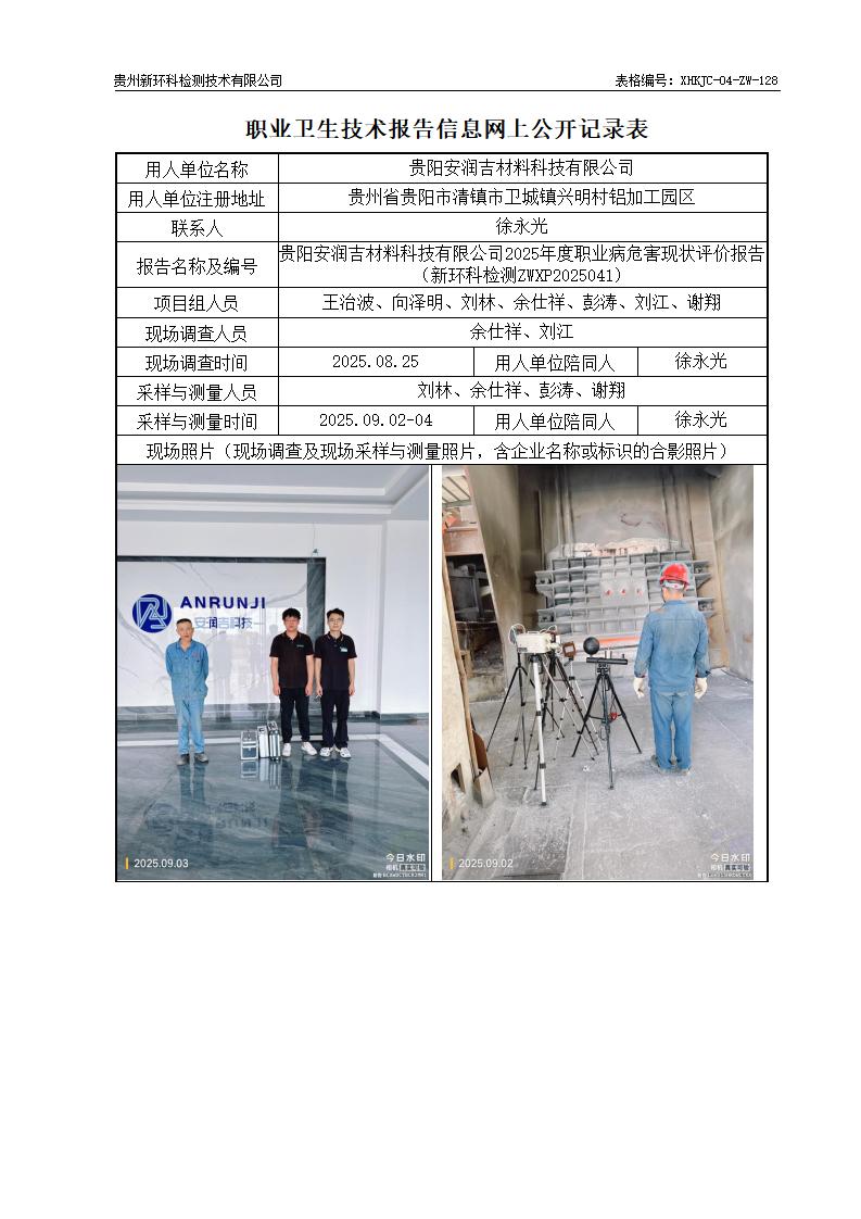 贵阳安润吉材料科技有限公司2025年度职业病危害现状评价公示
