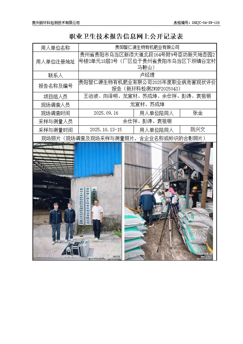 贵阳智仁源生物有机肥业有限公司2025年度职业病危害现状评价公示
