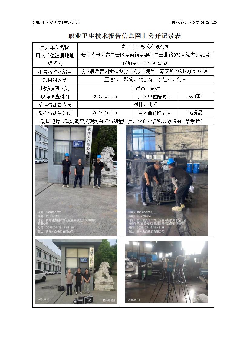 贵州大众橡胶有限公司职业病危害因素检测公示