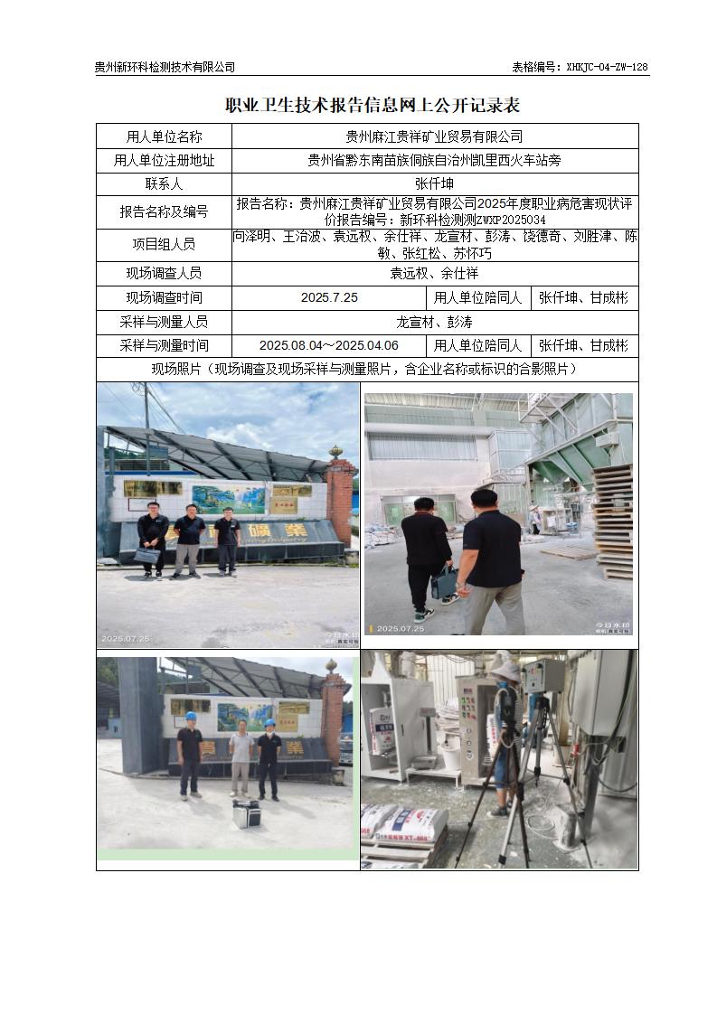 贵州麻江贵祥矿业贸易有限公司2025年度职业病危害现状评价公示