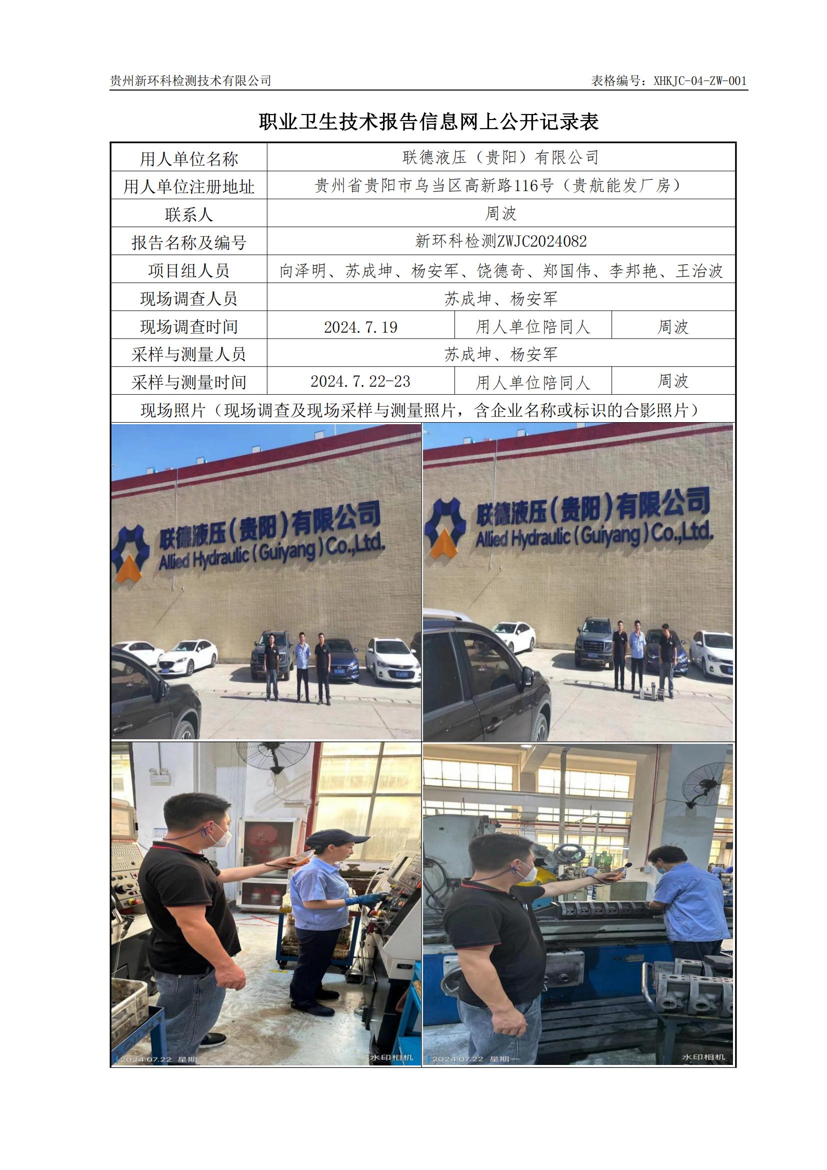 联德液压(贵阳)有限公司职业病危害因素检测公示