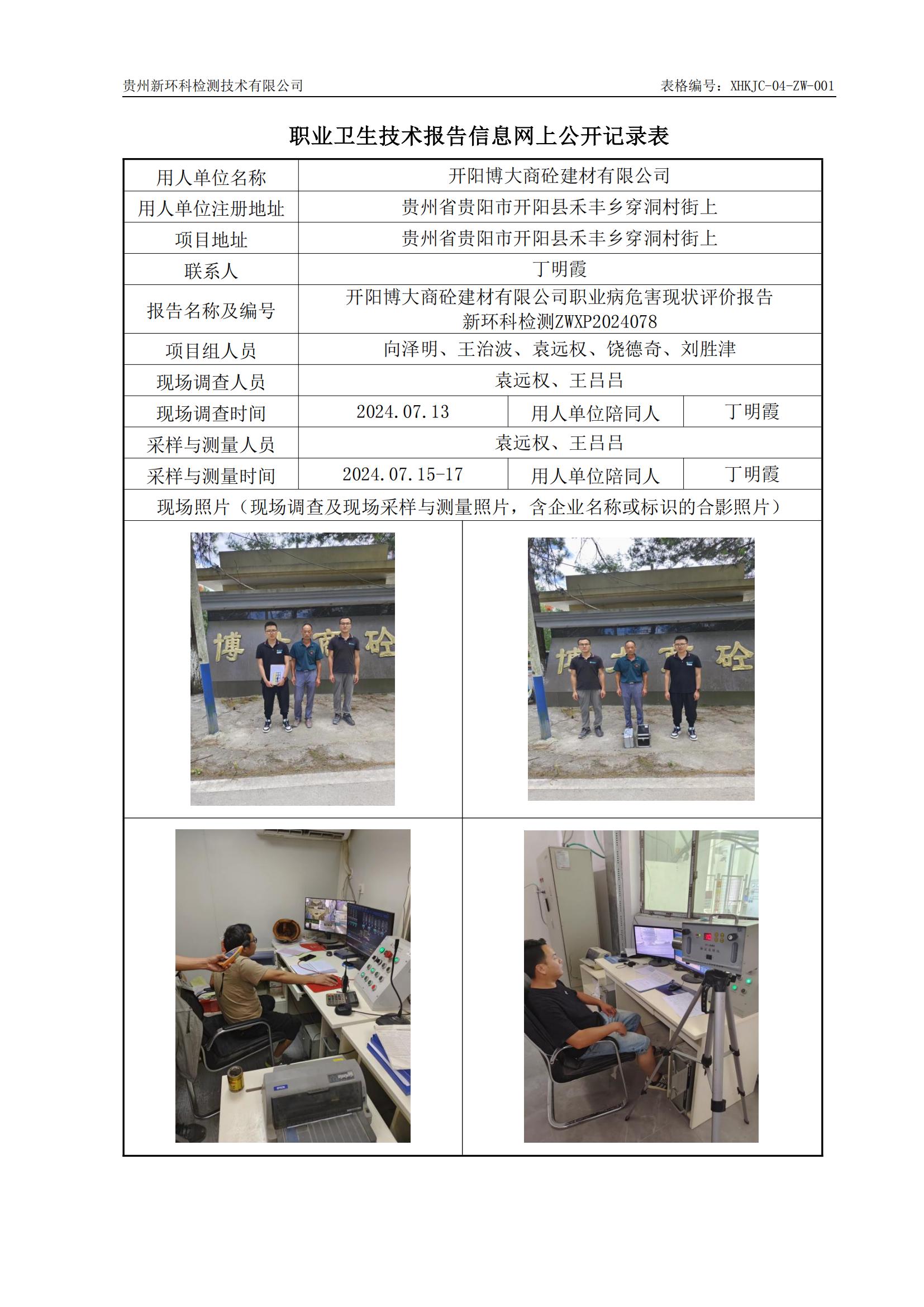 开阳博大商砼建材有限公司职业病危害现状评价公示