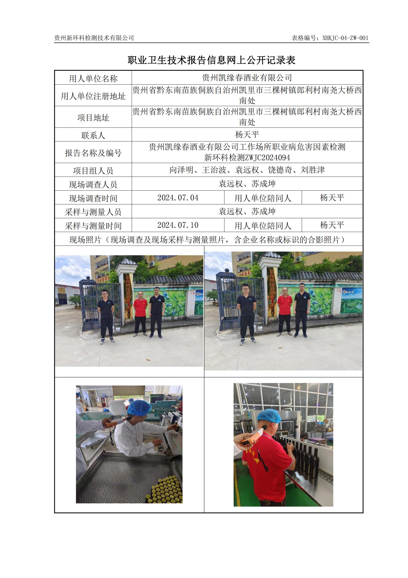 贵州凯缘春酒业有限公司工作场所职业病危害因素检测公示