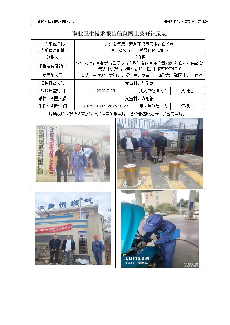 贵州燃气集团安顺市燃气有限责任公司2025年度职业病危害现状评价公示