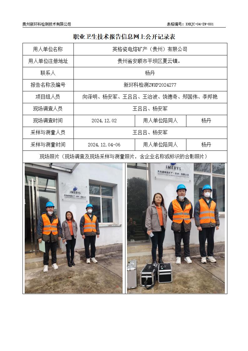 英格瓷电熔矿产(贵州)有限公司职业病现状评价公示
