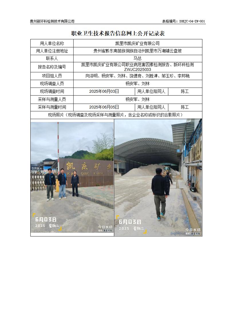 凯里市凯庆矿业有限公司职业病危害因素检测