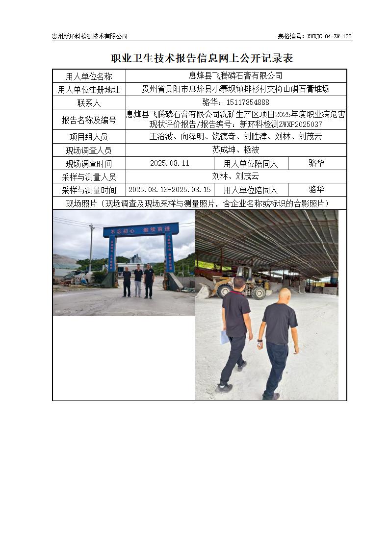 息烽县飞腾磷石膏有限公司洗矿生产区项目2025年度职业病危害现状评价