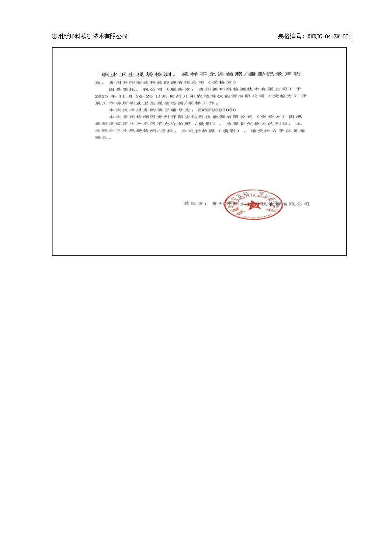 贵州开阳安达科技能源有限公司2025年度职业病危害现状评价公示