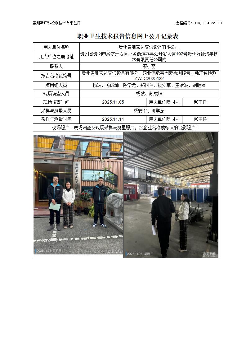 贵州省洲宏达交通设备有限公司职业病危害因素检测公示