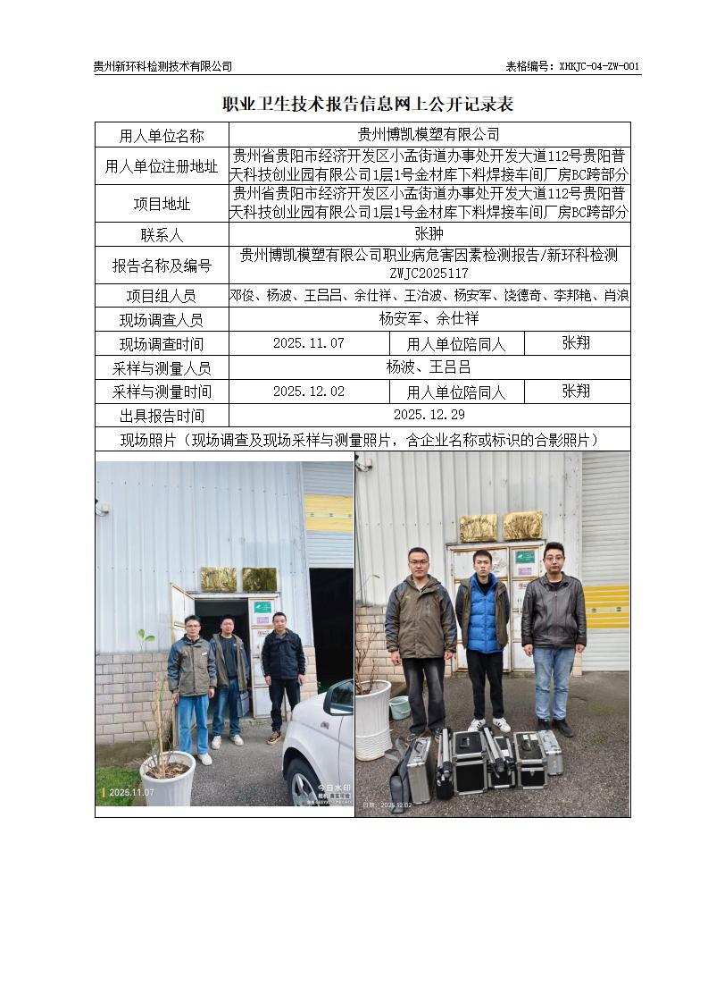 贵州博凯模塑有限公司职业病危害因素检测