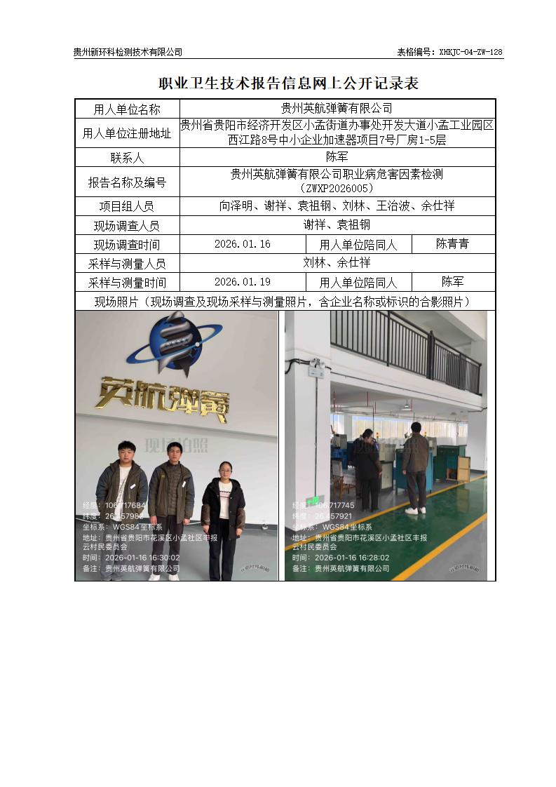 贵州英航弹簧有限公司职业病危害因素检测公示