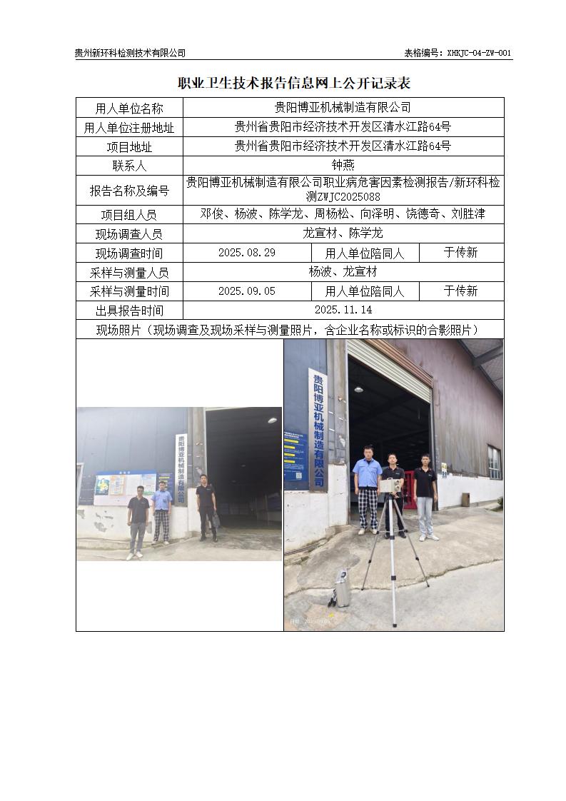 贵阳博亚机械制造有限公司职业病危害因素检测公示